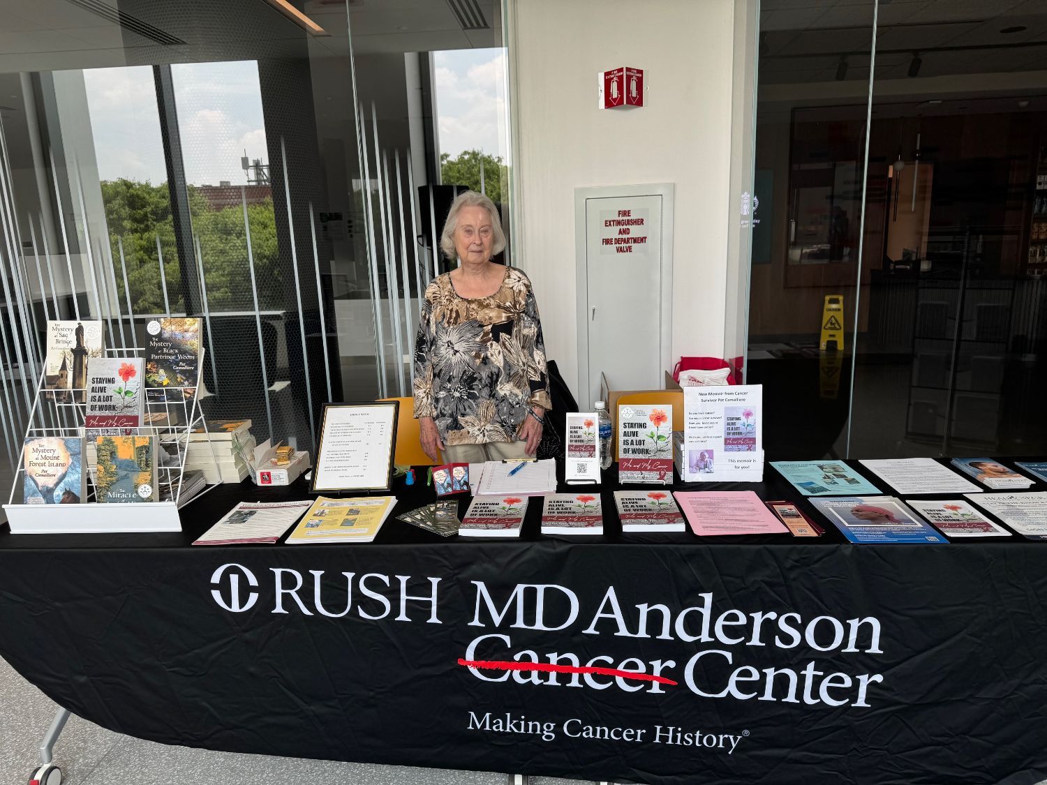 | | Pat Camalliere, one of our newer ambassadors, recently participated in Rush MD Anderson's Cancer Thrivers' Day (an annual event celebrating cancer patients, survivors, and their families, as well as the care providers who support them). Pat, Survivor of HPV-attributed Tongue Cancer, worked at Rush for many years and later received her head and neck cancer treatment there. At this exhibit, she is promoting her memoir, Staying Alive is a Lot of Work: Me and My Cancer,as well as sharing information regarding the Alliance. |