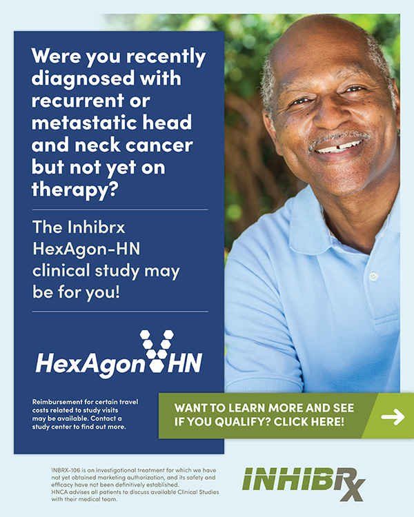 | | *Statement on Sponsor Content and Corporate Support: The information published on this website and in our materials is intended to educate you about Oral, Head and Neck Cancer. The content is not intended to take the place of a discussion with a qualified physician who is familiar with your medical situation. It is important to remember that each individual is different, and the reasons for—and outcomes of—any treatment plan depends on the patient's individual condition. If you have questions or concerns after reading any information on this website or in our materials, you should discuss them openly and honestly with your physician. Any products and manufacturers included on this site are presented for informational purposes only and do not constitute product approval or endorsement by HNCA. The content provided by HNCA is in no way intended to be a substitute for medical consultation with a qualified professional. HNCA encourages those using its resources to be careful when evaluating medical information or products. If you are unsure about your medical condition, consult a physician. Funding from our corporate partners supports HNCA’s programs and educational initiatives, and HNCA maintains independence in its design of programs, content, and initiatives. |