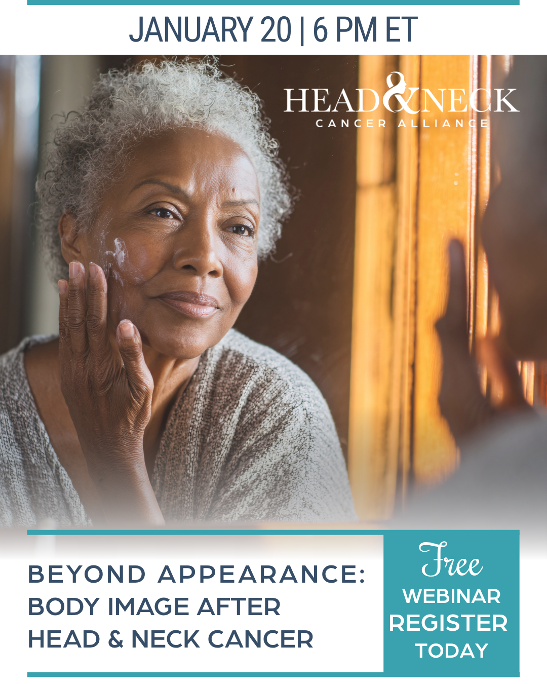 | | BEYOND APPEARANCE: BODY IMAGE AFTER HEAD & NECK CANCER Treatment for head and neck cancer often alters how survivors look and feel about themselves. This webinar will bring together medical professionals and a survivor to discuss the impact of these changes on body image and self-esteem—and how to move toward confidence, acceptance, and healing. Join us for an open and empowering discussion on seeing yourself beyond cancer. January 20, 2026 - 6pm ET SPEAKERS: |