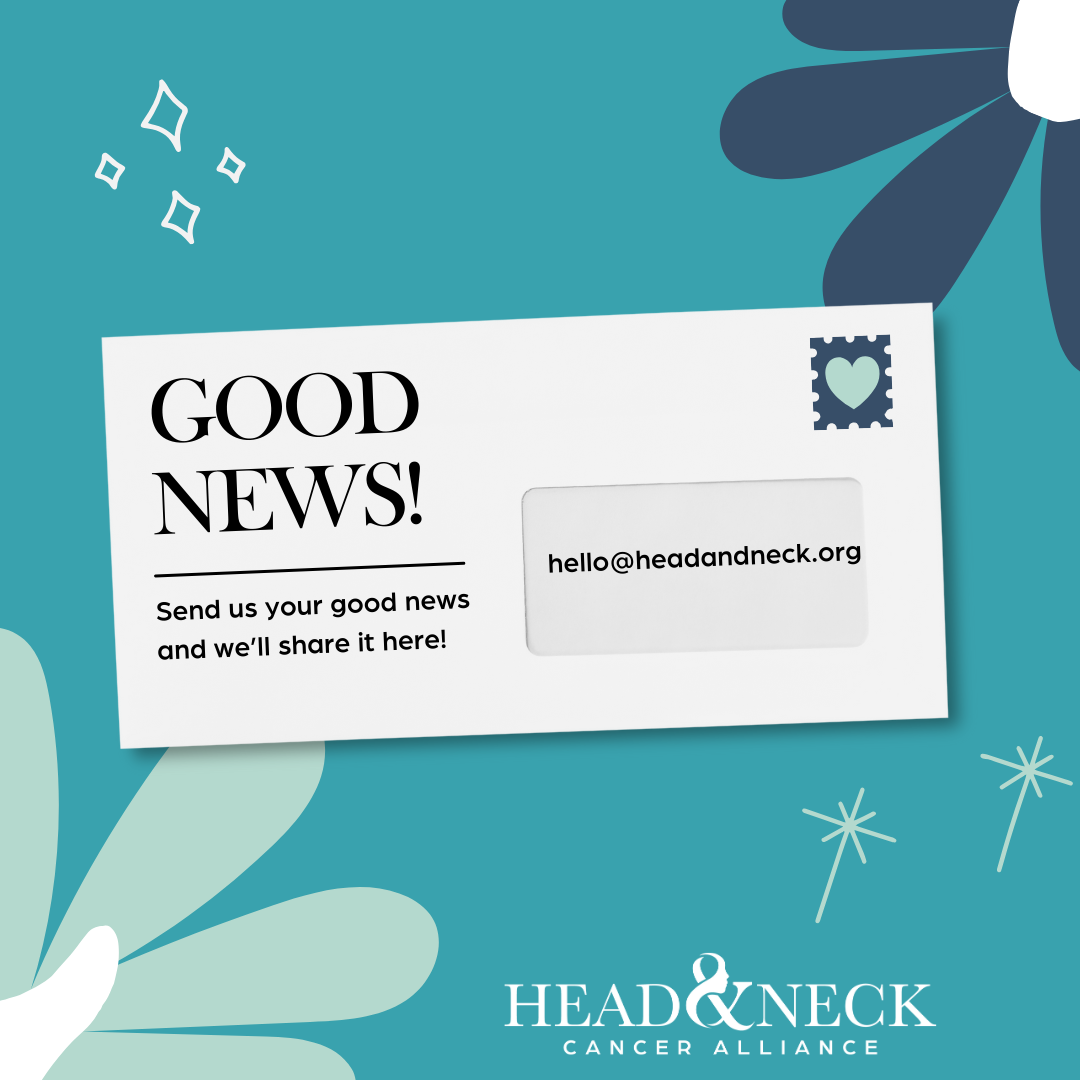 | | | SHARE YOUR GOOD NEWS! We want to celebrate the wins in our community, big or small. Finished treatment, joined an awareness event, welcomed a grandchild, or reached a personal milestone? We’d love to share your good news. This is open to patients, survivors, caregivers, and medical professionals. Email your story and a photo, and tell us what you’re celebrating. By submitting, you give us permission to share it in our newsletter or on social media. We can’t publish every submission. Send your good news to hello@headandneck.org. |