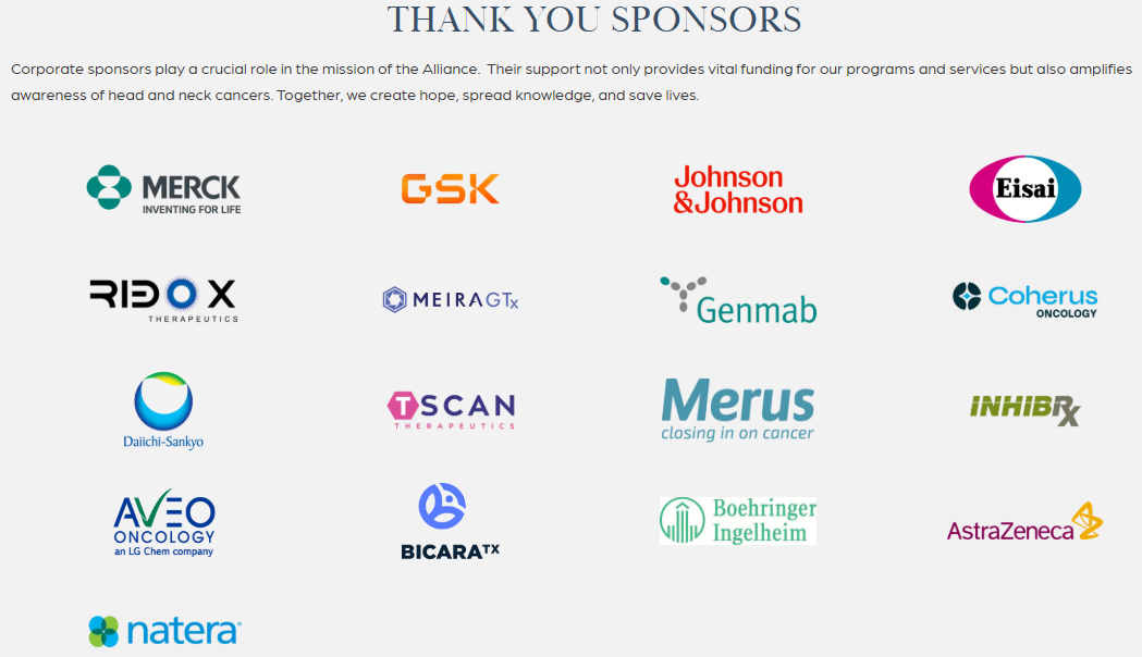| | *Statement on Sponsor Content and Corporate Support: The information published on this website and in our materials is intended to educate you about Oral, Head and Neck Cancer. The content is not intended to take the place of a discussion with a qualified physician who is familiar with your medical situation. It is important to remember that each individual is different, and the reasons for—and outcomes of—any treatment plan depends on the patient's individual condition. If you have questions or concerns after reading any information on this website or in our materials, you should discuss them openly and honestly with your physician. Any products and manufacturers included on this site are presented for informational purposes only and do not constitute product approval or endorsement by HNCA. The content provided by HNCA is in no way intended to be a substitute for medical consultation with a qualified professional. HNCA encourages those using its resources to be careful when evaluating medical information or products. If you are unsure about your medical condition, consult a physician. Funding from our corporate partners supports HNCA’s programs and educational initiatives, and HNCA maintains independence in its design of programs, content, and initiatives. |